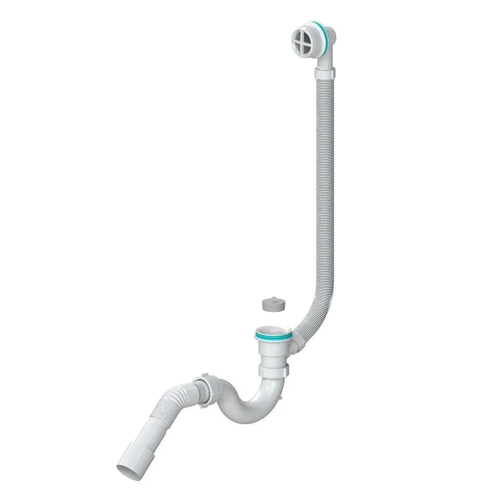 Sifon cada D. 1.1/2" x 40 "S"-tip, grila din plastic, cu preaplin si furtun gofrat 40/50 SOLOPLAST
